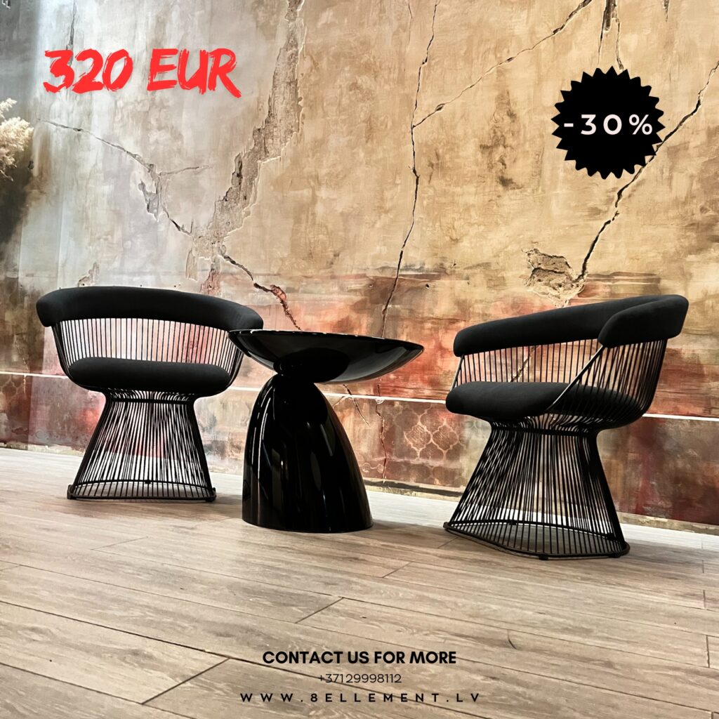 В нашем салоне сейчас действует приятная скидка на часть мебели из представленной коллекции. Речь идёт о креслах, столиках и стульях, которые уже можно увидеть в экспозиции. Некоторые позиции, показанные на фотографиях, участвуют в акции — это отличная возможность приобрести качественную дизайнерскую мебель по более выгодной цене.