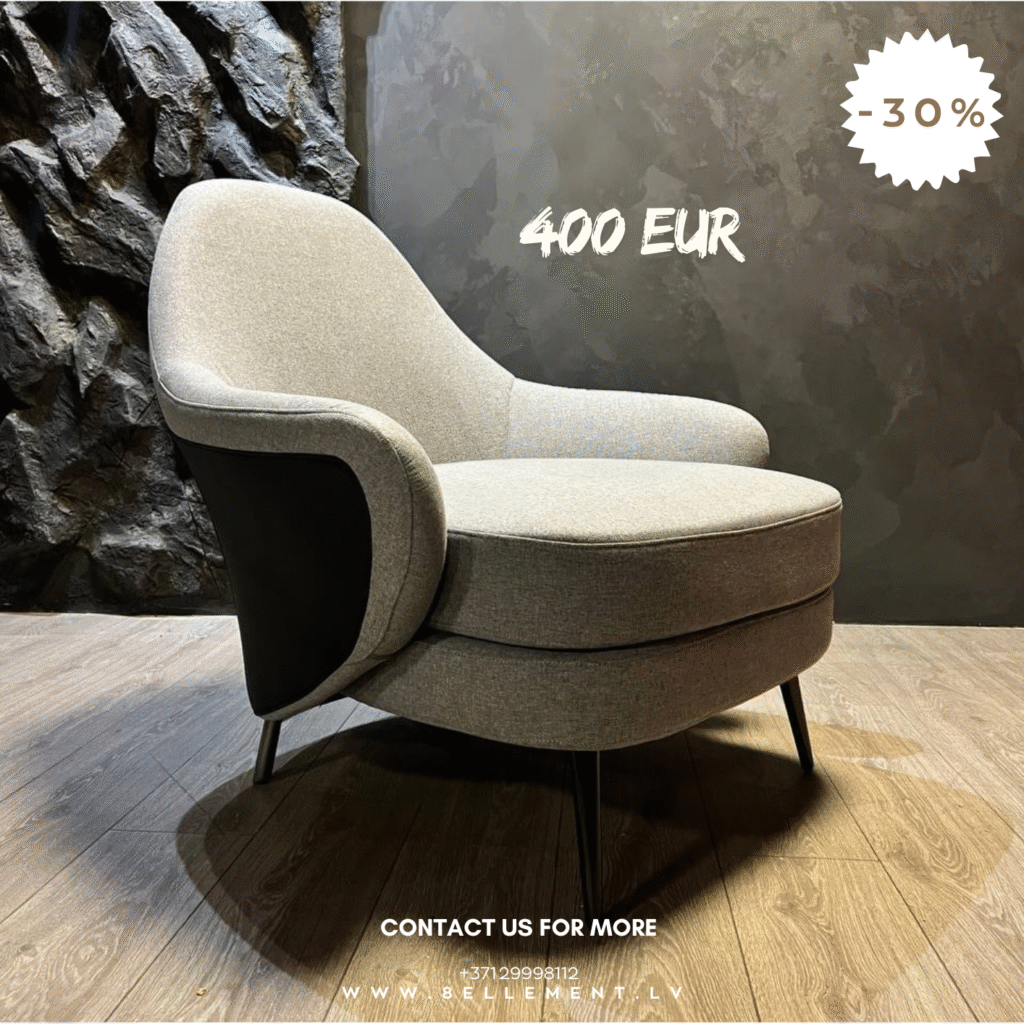 Вся мебель находится в наличии в нашем салоне по адресу Kārļa Ulmaņa gatve 2. Можно прийти, посмотреть вживую, оценить материалы, посадку, оттенки и детали — всё то, что невозможно почувствовать по фото.