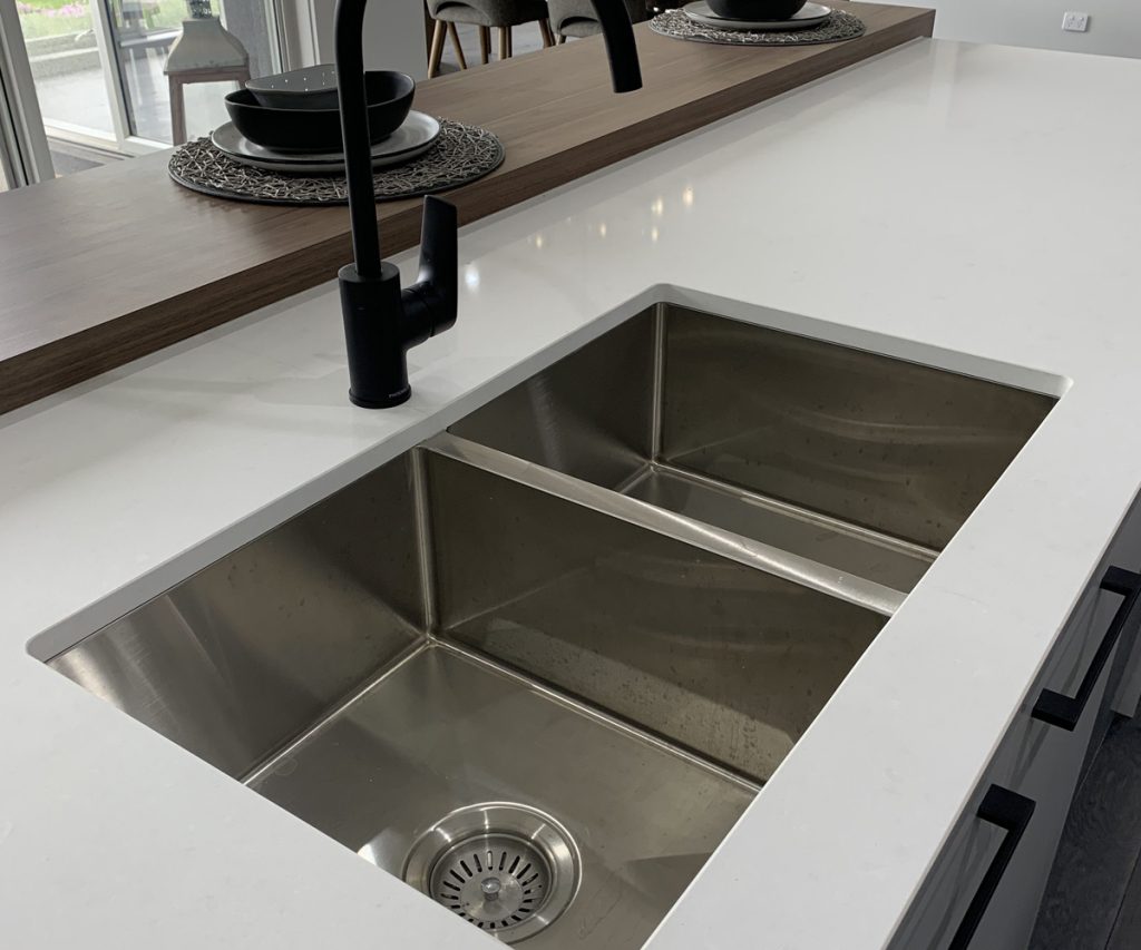 В кварцевом агломерате используется эпоксидная смола. Данный материал более прочный и термостойкий ( +150 C) , по сравнению с акриловым камнем, поэтому более защищён от царапин и горячей посуды.