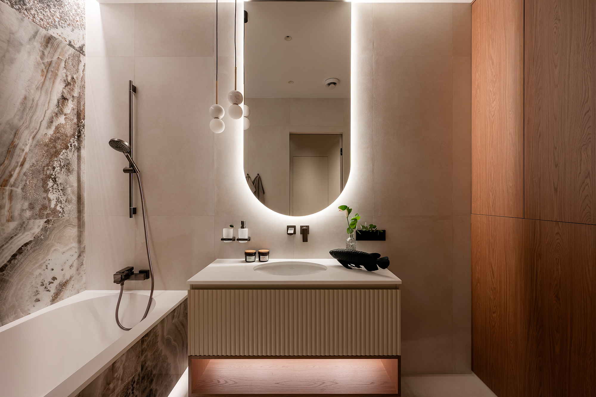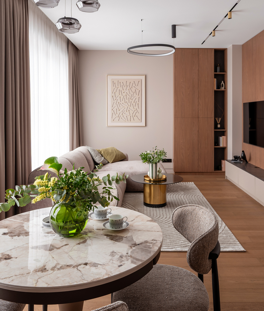 Проект реализован по дизайн-концепции Katerina LAVR (@lavrdesign). В интерьере точно выдержаны пропорции, выстроена логика движения и размещения мебели. Ничего случайного. Всё подчинено ощущению баланса и внутреннего спокойствия.