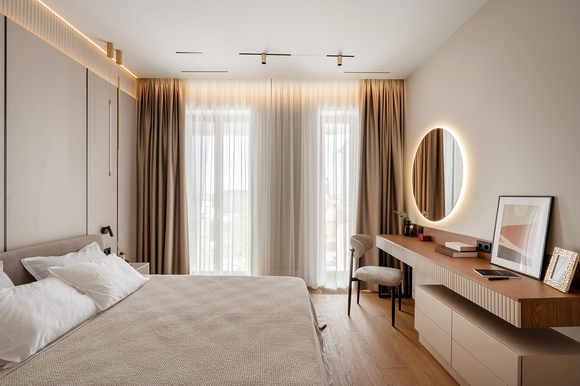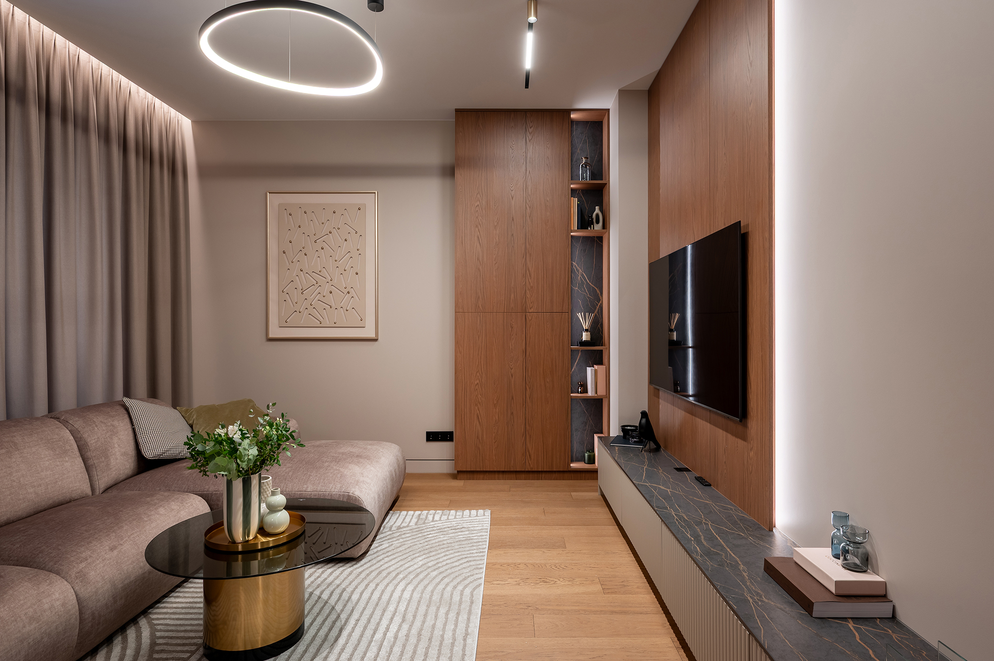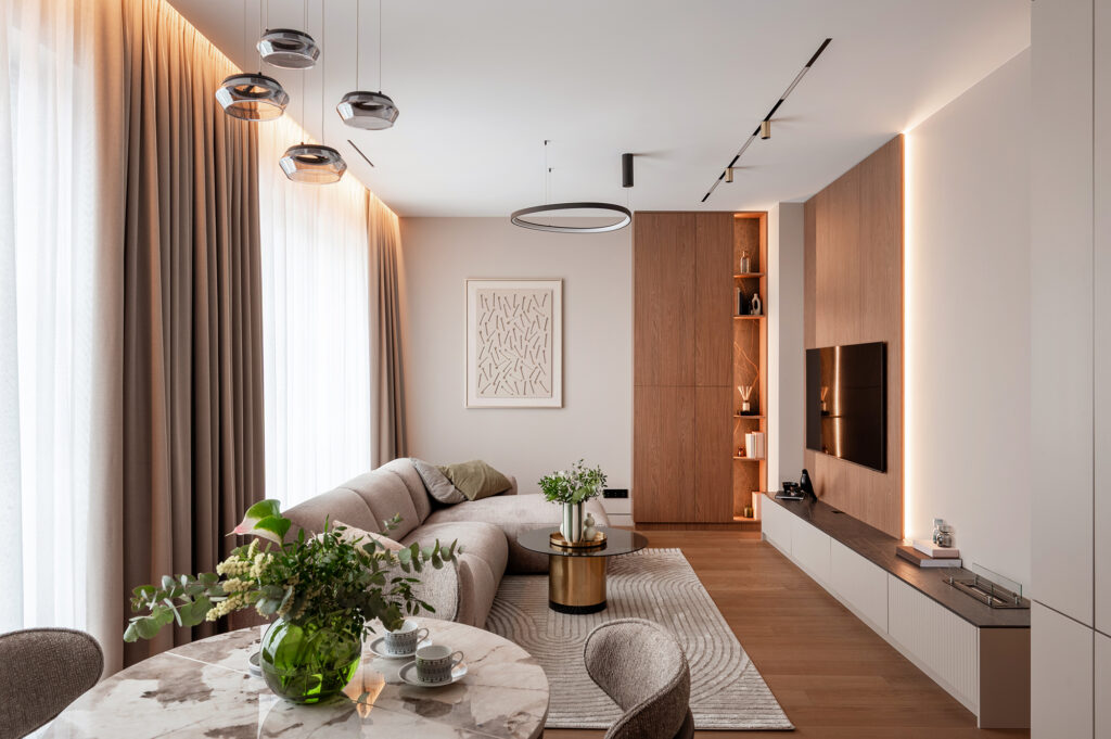 Этот проект — про гармонию, свет и внимание к деталям. Про пространство, в котором хочется жить, мы реализовали его полностью — от первых замеров до финальной установки.
